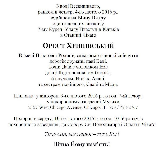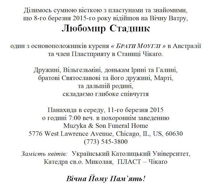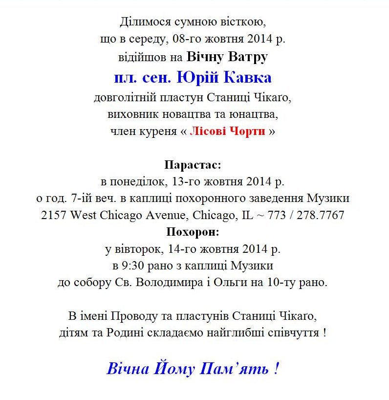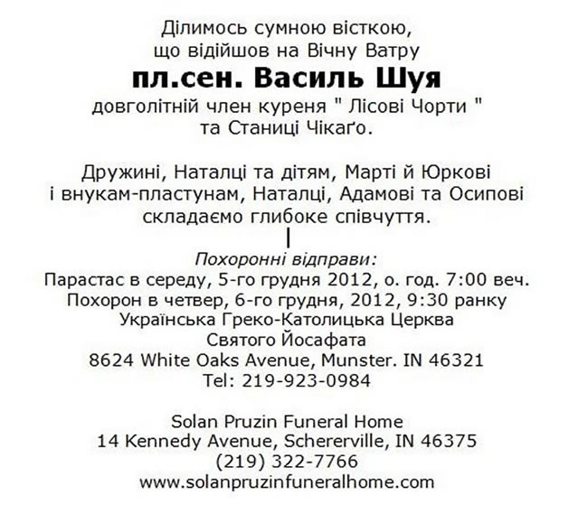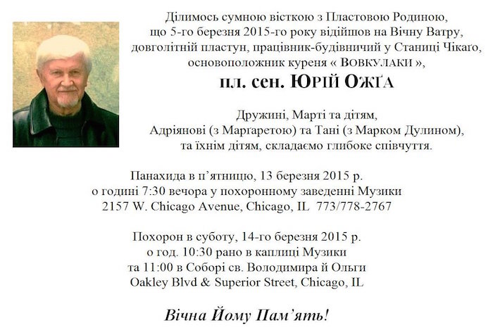 15-го жовтня 2012 р. відійшов на Вічну Ватру